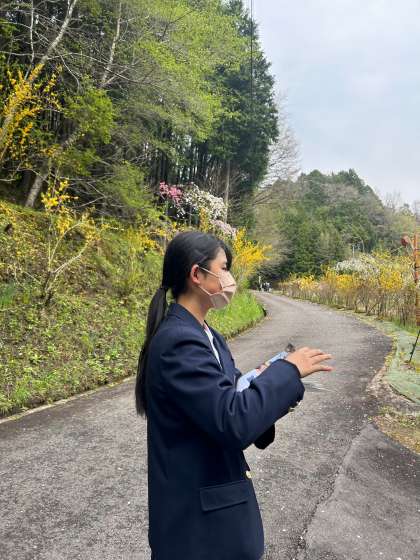 3年生は上中町で行われているしだれ桃イベントに参加しました!6月18日に行われる旭マルシェのチラシを配りました!