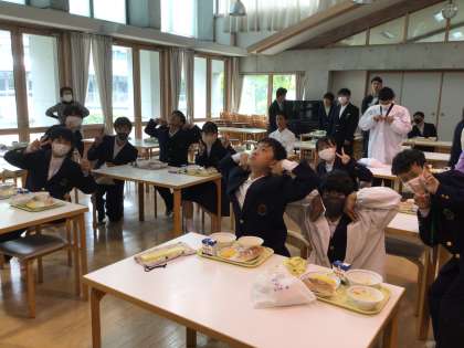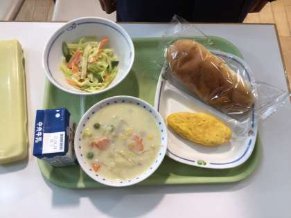 今日のメニューは、春キャベツのポタージュ、春野菜のサラダでした。