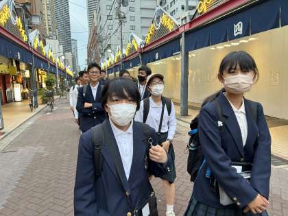 みんなでもんじゃストリートを歩きました!