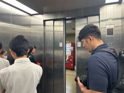 出展に向けてスタッフ用のエレベーターに乗りました!