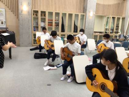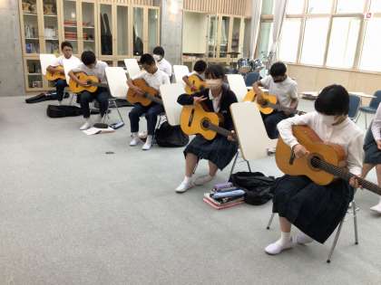 3年生の音楽ではギターを演奏しています! カントリーロードを弾くためにコードを練習中です。