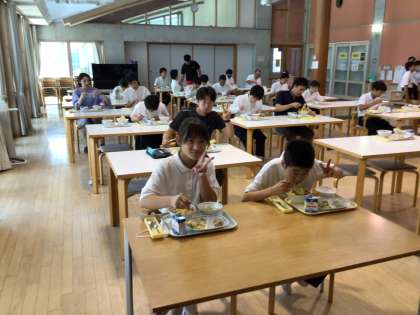 今日の献立は、みそラーメン、パオズ、棒棒鶏でした。 9月からの給食も楽しみですね。