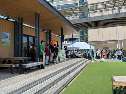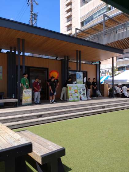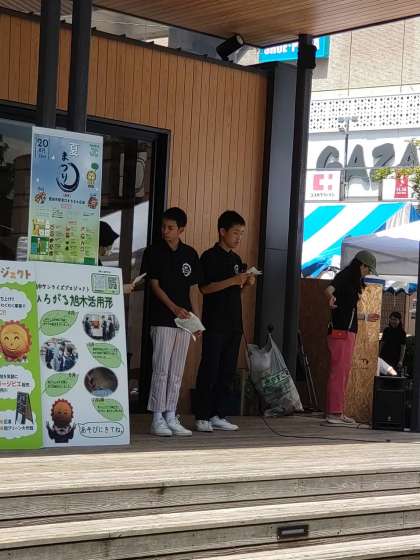 ?JC夏まつりに、しきしまのいえさんと一緒に参加しました!間伐材を使ったコースターを無料配布して、旭をアピールしました!ステージ発表もしました!
