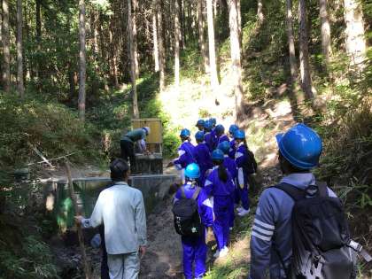 26日に大洞町の水道水源林モニタリング地を見学し、豊田市と東京大学で行っている間伐の効果に関する研究について現地で学ばせていただきました。