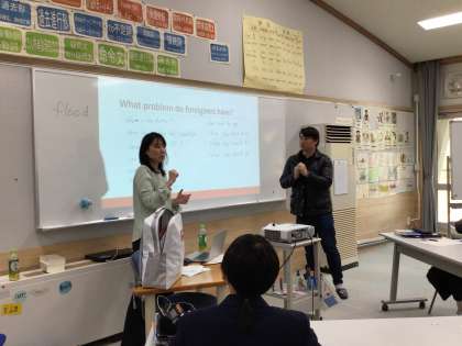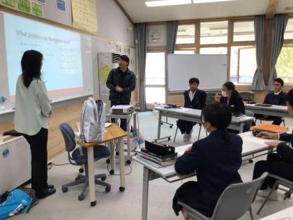 ハイブリッド授業 公開日 2023/11/06 更新日 2023/11/06 活動の記録 豊田工業高等専門学校の市川先生による英語と理科のハイブリッド授業パート2を行いました。 9月に行った浄化の授業の続きを英語で学びました。