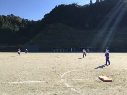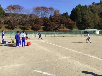 ソフトボールの練習をしています。