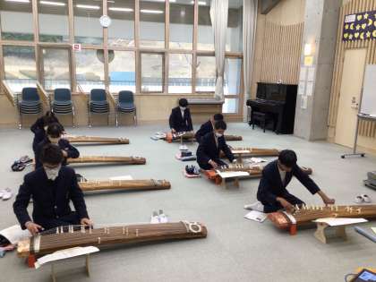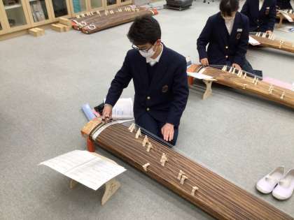 3年生 音楽の授業〈箏〉 公開日 2023/12/07 更新日 2023/12/07 活動の記録 今年も「箏」の時期がやってきました。久々に触れる箏を楽しんでいました。 美しい姿勢は、いい演奏につながりますね。
