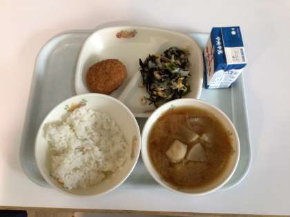 今日の給食は「豊田ブランドの日」ということで、ひまわりポークやミネアサヒを使ったメニューでした。