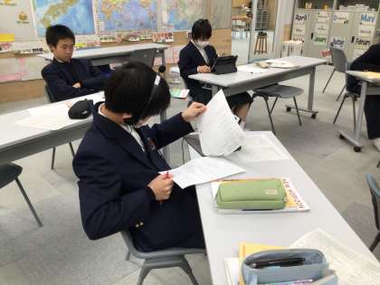 二年生はテスト対策プリントを解いています!