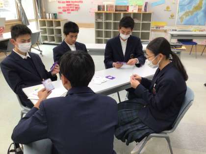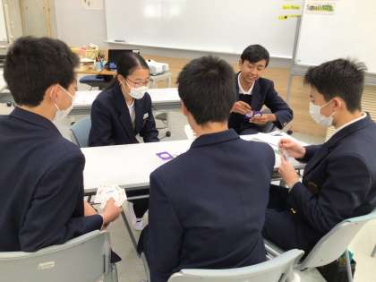 クリスマスに関係する会話をしながら英語のカードゲームをしています!