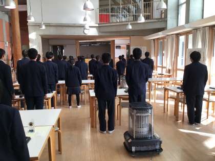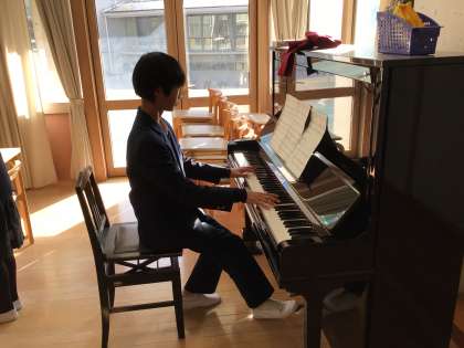 校歌斉唱。今日から1年間、2年生の伴奏者になります。