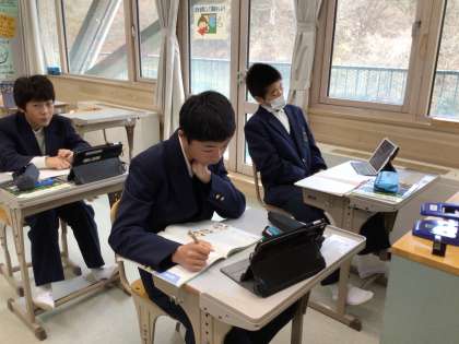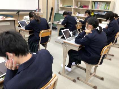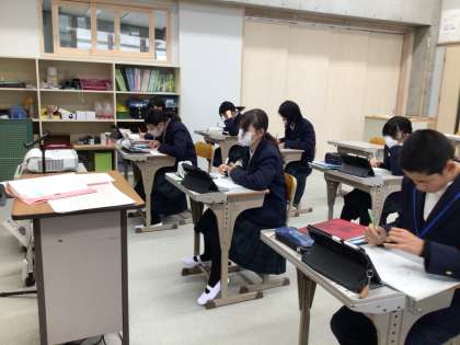 1年生は英語でリスニング問題に挑戦しています!みんな真剣です