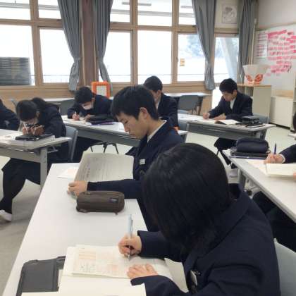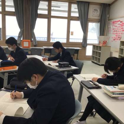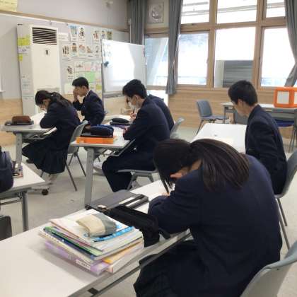 リスニング問題に挑戦しています!3年生は入試に向けて勉強しています!