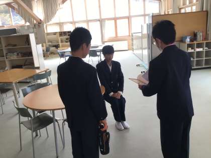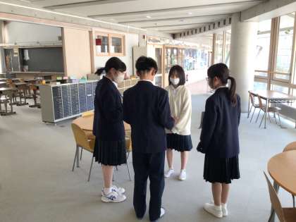 学校中を探検しながらクイズの答えを探しています!