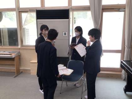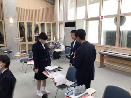 チームに分かれてリズムアンサンブルの練習をしています。合わせるのはけっこう難しい!