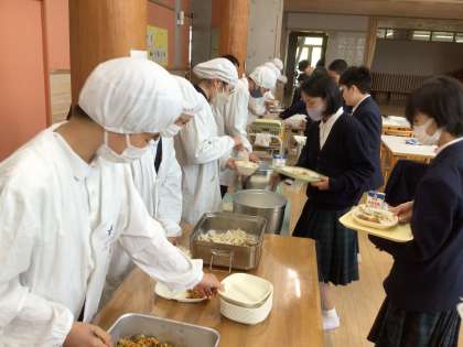 どの学年も給食当番の手際がとても良いです。今日はみんな大好きかしわもち!!