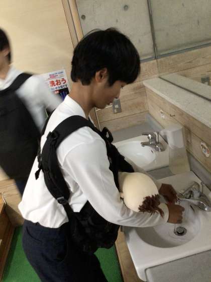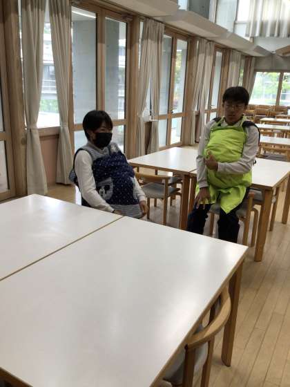 妊婦体験として3kgの赤ちゃん人形を抱っこして学校中を歩いてみました!