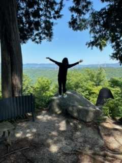 一年生が縁結び岩に来ました!とても良い眺めの場所でした!
