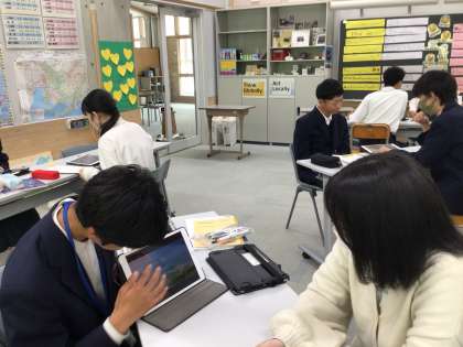 英語で発表しています! 2年生の発表を3年生が聞いています!
