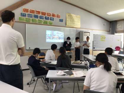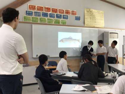 写真を見せながら英語で旭を紹介しました!