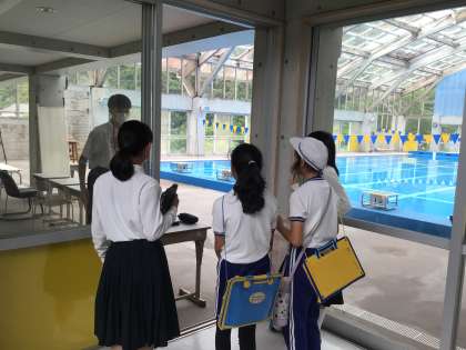 本日、敷島小学校の児童の皆さんが中学校へやってきました。児童の皆さんを、1年生が英語で道案内。案内した各教室には、1年生が待っていて、英語で質問をします。楽しくコミュニケーションをとることができていました。