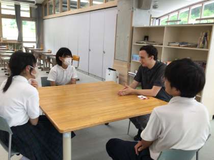 2、3年生のグループで英会話をしています!朝ごはんや夕ごはんについて話しています!