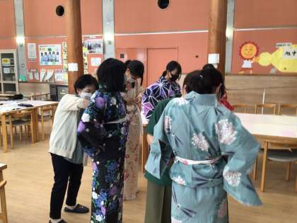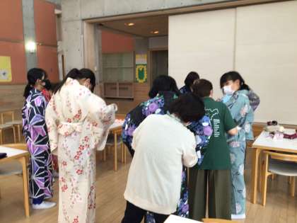「浴衣を着ると夏っぽい!」と言っている生徒もいました。色とりどりの浴衣を着ています!