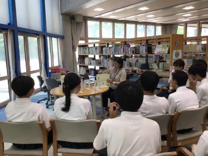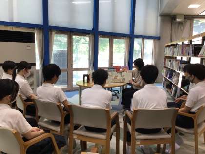 マザーズララバイという単元に入ります。戦争についての絵本を聞いています。司書さんの読み聞かせです。