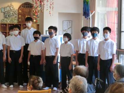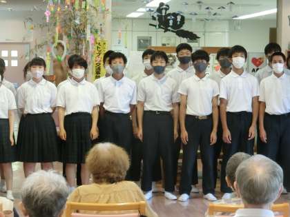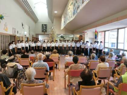 全校生徒でぬくもりの里を訪問しました。最初に「翼をください」と「糸」を歌いました!