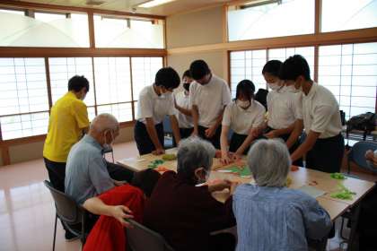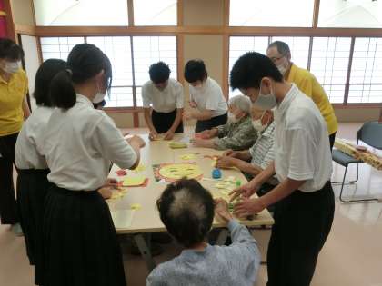 班に分かれて生徒会が企画した貼り絵をしました!利用者さんと協力して作り上げていきます。