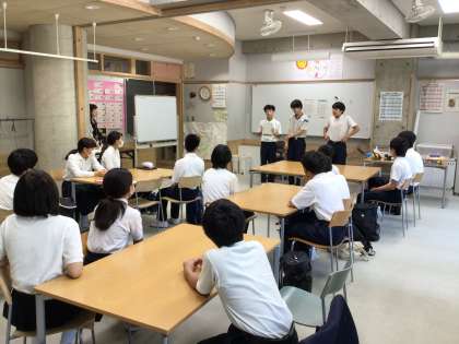 9/5 イベントの宣伝 公開日 2024/09/05 更新日 2024/09/05 活動の記録 9/8に3年生が行うイベントを下級生に宣伝しました。テレビにも出演した3年生のイベントに下級生も興味津々です。