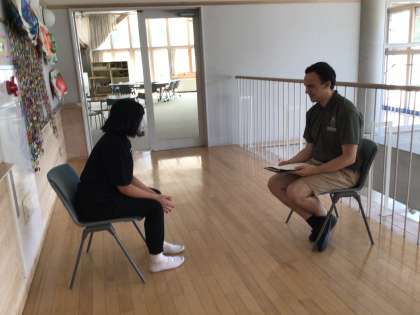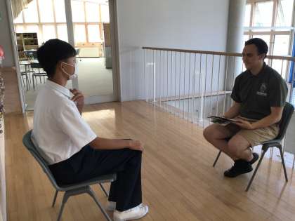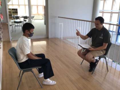 ALTの先生と英会話をしています!習った単語を思い出しながら会話を続けています!