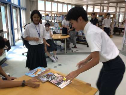 9/13 本しりとり 公開日 2024/09/13 更新日 2024/09/13 活動の記録 旭中の伝統イベント「本しりとり」を今年も図書委員会が企画してくれました。今日は3年生が挑戦しました。とても盛り上がって楽しかったです!