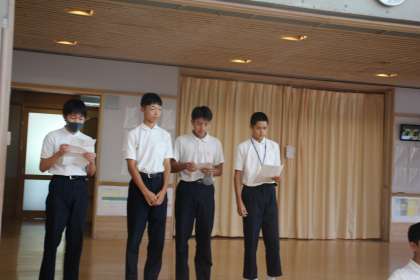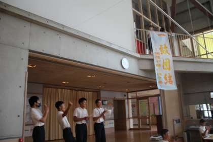 生徒会が体育祭・文化祭のスローガンを発表しました。今年は「一致団結 〜 個性が輝く旭中祭 〜 です。スローガンが決まると全員の士気が高まりますね!