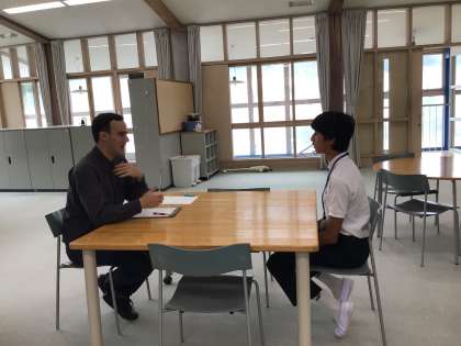 ALT の先生と英会話しています!1対1で話す機会を設けています!