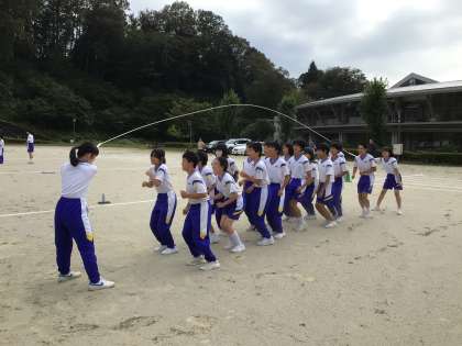 「大縄跳び」練習の様子です。各チームで作戦を練って跳べる回数が増えてきましたね。