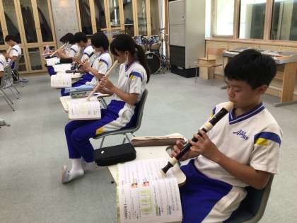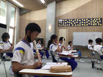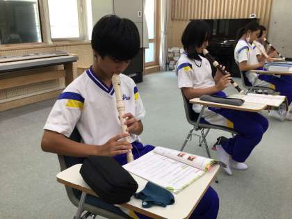 1年生の音楽では、リコーダーを練習しています。虹の彼方にという曲に取り組んでいます!