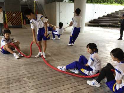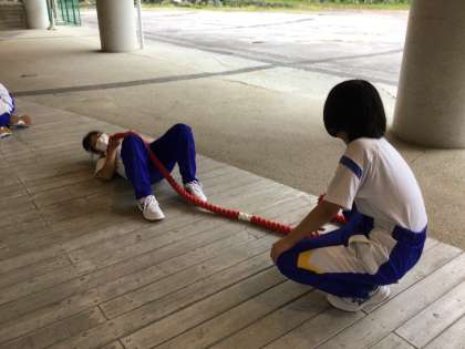 組にわかれて練習をしています!綱引き練習!