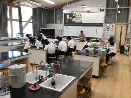 前期最後の授業です。1年1組は理科、2組は自立活動を行っています。