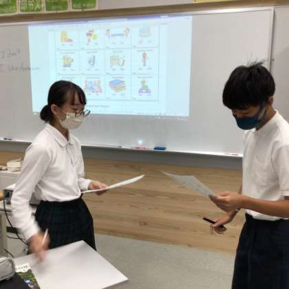 1年生の英語では会話を続ける練習をしています!