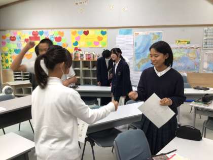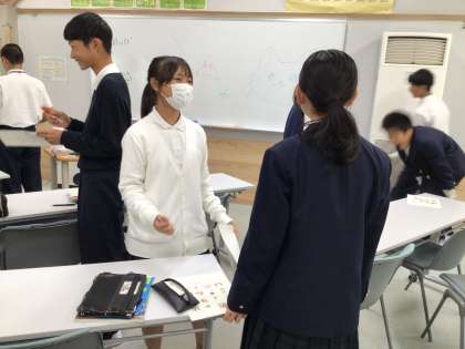 2年生の英語では何度も言葉に出して定着できるように、授業でアクティビティをおこなっています。
