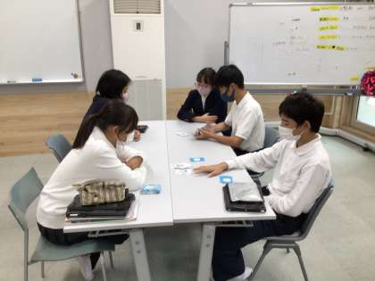 カードを使って会話をしています。