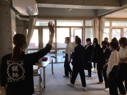 1年生は旭地区の魅力と課題を考えています。猟師さんのお話から、新しい視点を取り入れることができました。