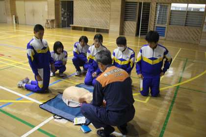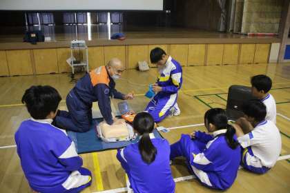 11/26 2年救急救命法講習 公開日 2024/11/26 更新日 2024/11/26 各学年から 2年生は消防署の方をお招きして救急救命法講習を行いました。躊躇せずに人命救助ができるとよいですね!