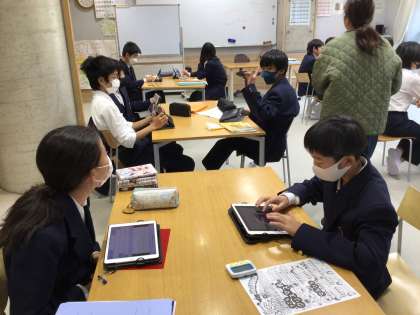 1年 帰りの会 公開日 2024/12/02 更新日 2024/12/02 各学年から 1年生は帰りの会でコミュニケーションゲームを行っています。知らなかったクラスメイトの魅力を発見しておどろいていました。