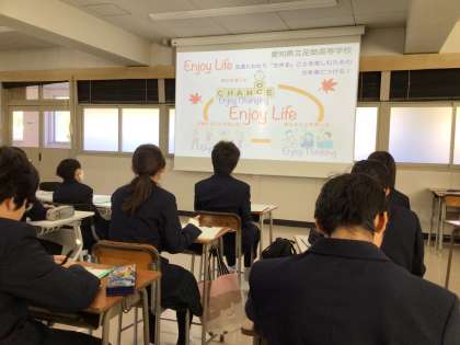足助高校での様子です。校長先生が学校紹介をしてくださいました。