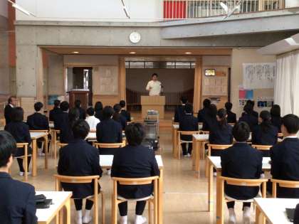 冬休み前全校集会 公開日 2024/12/25 更新日 2024/12/25 活動の記録 校歌斉唱の様子です。今日から2年生が新しく伴奏を担当します! 生徒指導の先生のお話もありました。みんな元気に1月に会えますように。良いお年をお迎えください。
