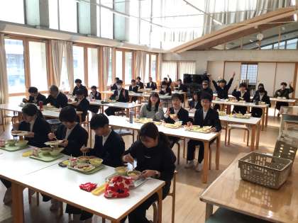 給食の様子 公開日 2025/01/23 更新日 2025/01/23 活動の記録 今日の献立は「ジャージャー麺」でした。春巻きもパリパリでとても美味しかったですね! 図書委員の3年生が本紹介をしました。なぞなぞもあって面白かったですね!