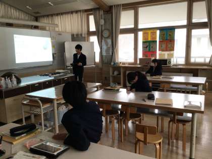 3年生のまとめ発表を行いました。 聞いている人は、熱心によいところなどを書いていました。