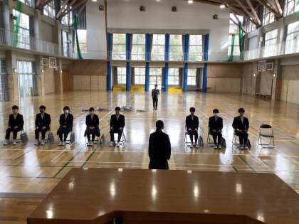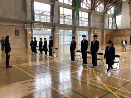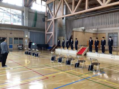 体育館での卒業式練習がはじまりました。ひとつひとつ動きを確認していきます。